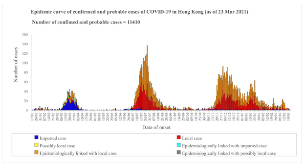 At the beginning of the pandemic, most of Hong Kong’s cases were imported from China just before Chinese New Year in 2020. It was quiet for a long time until the second wave, which originated in students coming back from the United Kingdom and United States. The third wave was probably due to sailors and pilots who had been exempted from testing. The fourth wave was the so-called dancing cohort, which, unfortunately, had been quietly spreading for a long period, so when infection control measures were relaxed, there was a burst of cases. It took four months to contain the fourth wave.