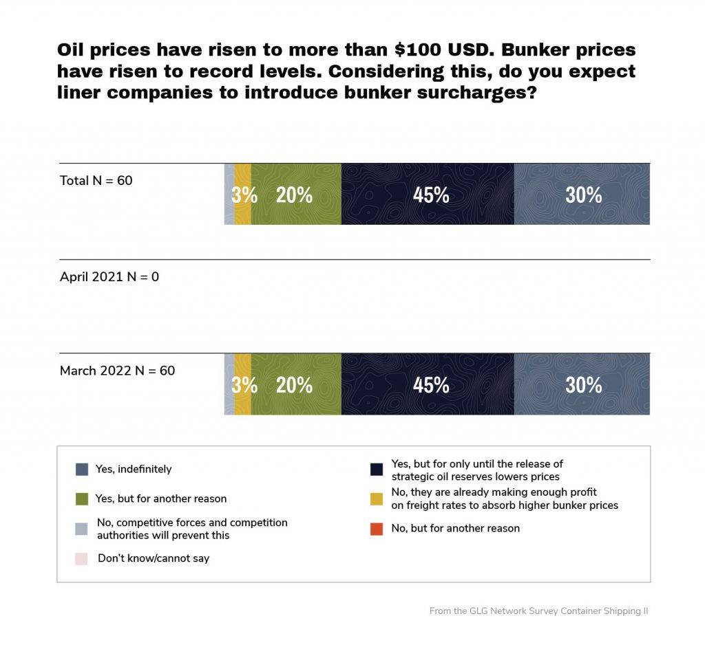When we asked them about bunker surcharges, nearly all our respondents expected them to be introduced, especially in the context of rising oil prices.