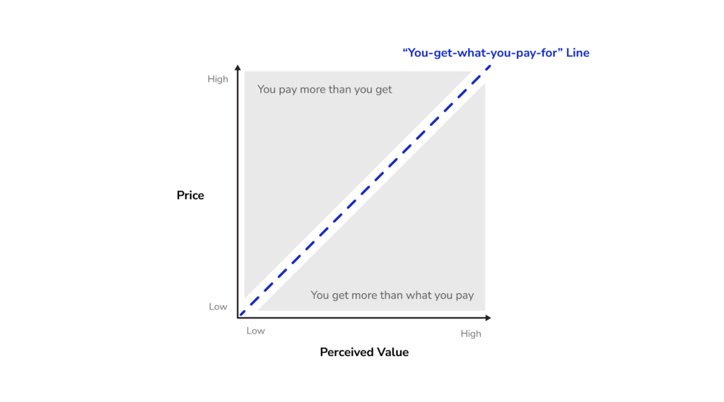 At the heart of the value mapping framework is the “you-get-what-you-pay-for” line, a diagonal on the value-price map where products deliver proportional value to their cost. Products positioned near this line are perceived as offering good value for money. However, deviations from this line — either through overpricing or underpricing — can result in customer dissatisfaction or unsustainable profits. Overpriced products fail to attract customers, while underpriced products may erode margins despite high demand.