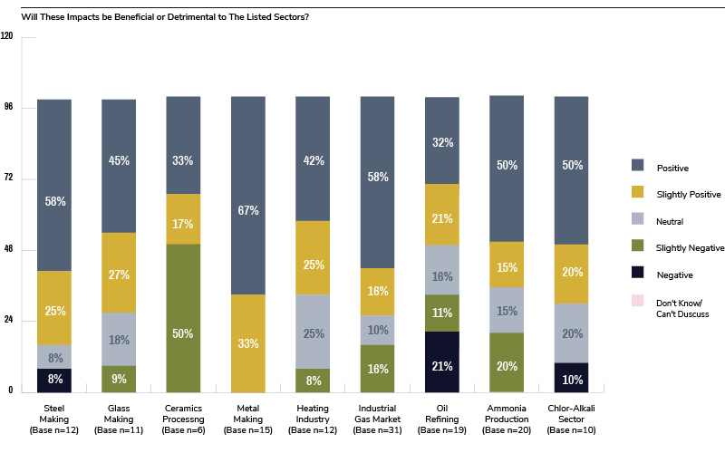 In contrast, two-thirds of people in the ceramic processing market felt it would have a negative impact. This is probably due to the fact that they will have a huge capital expenditure on upgrading their kilns and furnaces to be able to accommodate hydrogen and natural gas mixtures.