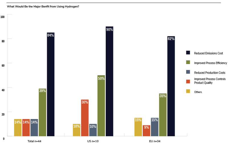 The results indicate that the majority also see benefits from using hydrogen, such as reduced emissions costs and improved process efficiency.