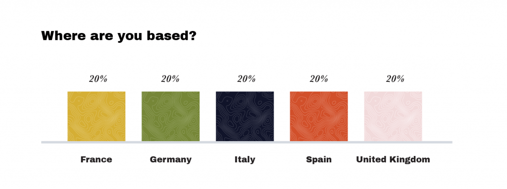 To understand more about this topic, GLG conducted a survey of 75 executives across the UK (20%), France (20%), Italy (20%), Spain (20%), and Germany (20%). Of those surveyed, 53% were head of/director level, 25% were C-suite, 12% senior VP/VP, and 9% manager level. These respondents work in a variety of industries, including industrial (53%), automotive (24%), transportation (9%), energy (8%), utilities (3%), chemicals (1%), and shipping (1%). All respondents were knowledgeable and able to discuss the implications of COP26 and Net Zero on their industry.