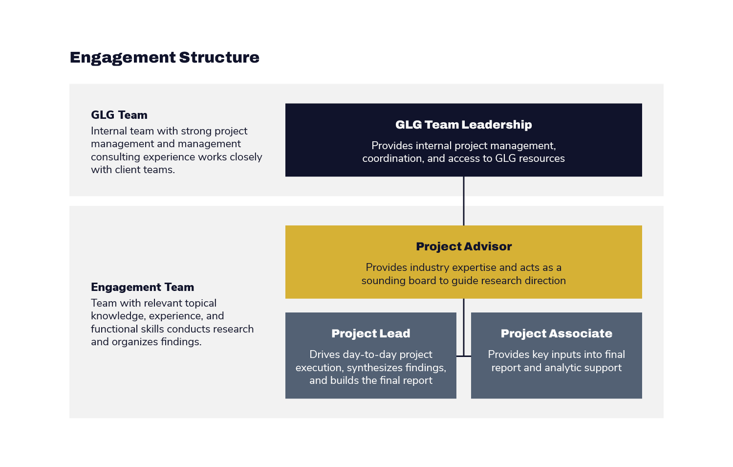 Every GLG engagement is supported by our industry-leading compliance standards. As part of our Compliance Framework, Network Members and support professionals are trained to keep client interests and information confidential.