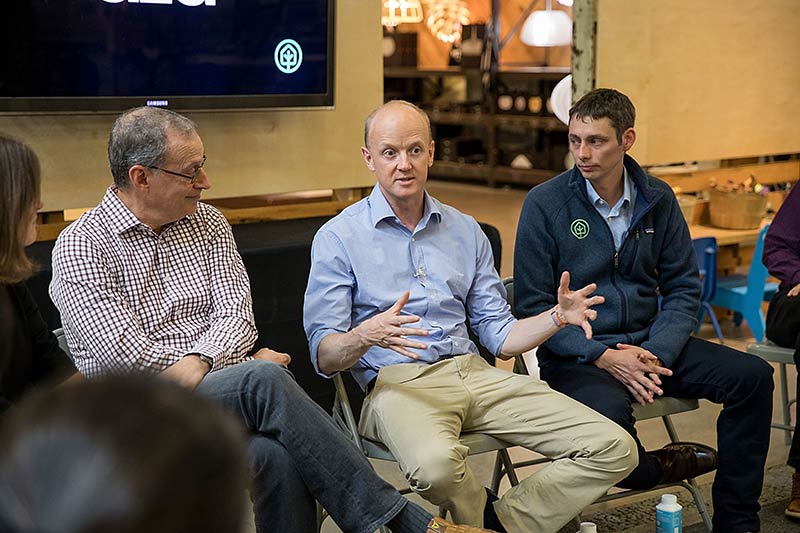 From left, former CEO and president of FedEx Kinkos and TreeHouse board member Gary Kusin, GLG CEO Alexander Saint-Amand, and Jason Ballard, CEO and co-founder of TreeHouse at the meeting of GLG Social Impact Fellows in Austin on Oct. 17, 2017.